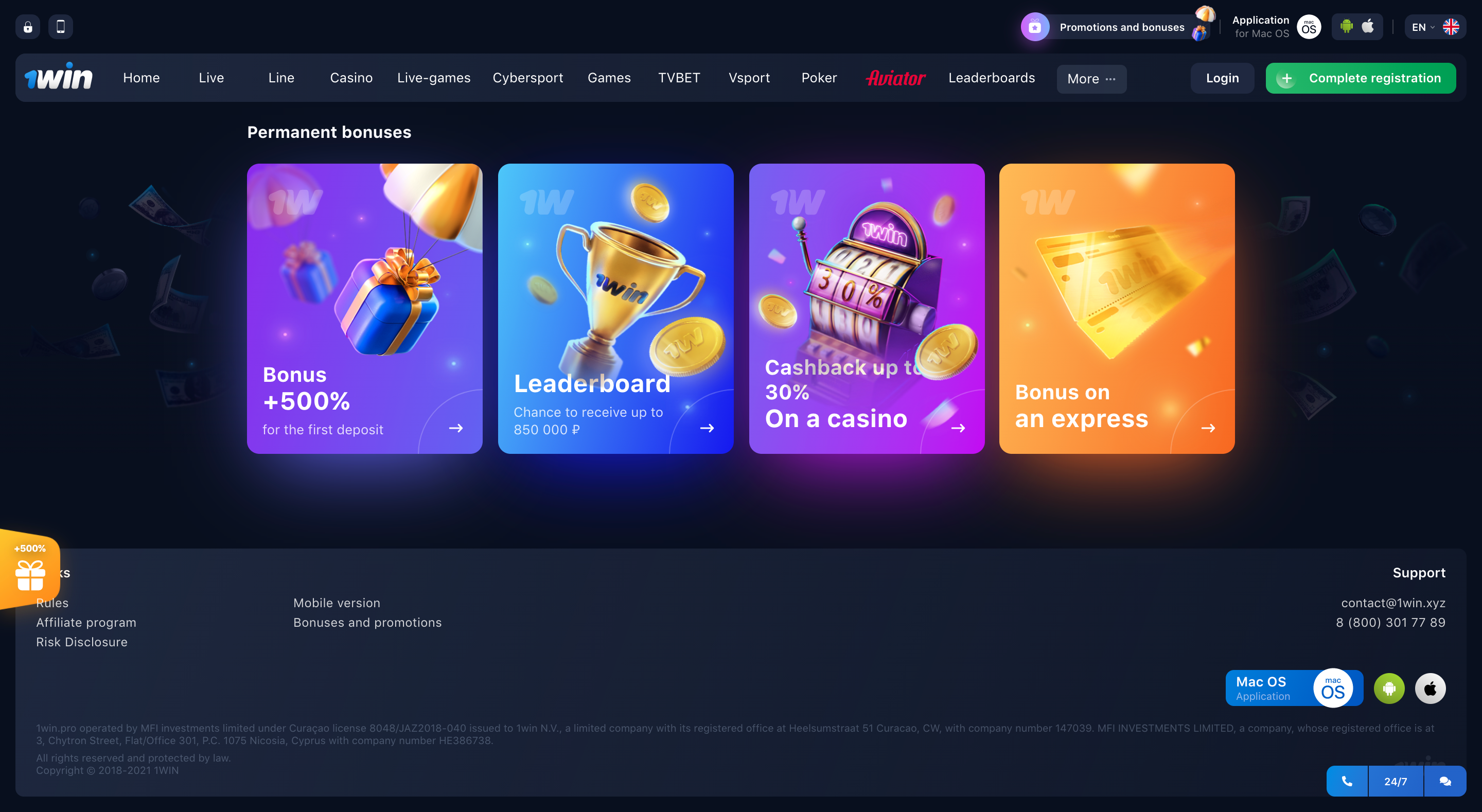 1 Win Casino Suporte ao cliente