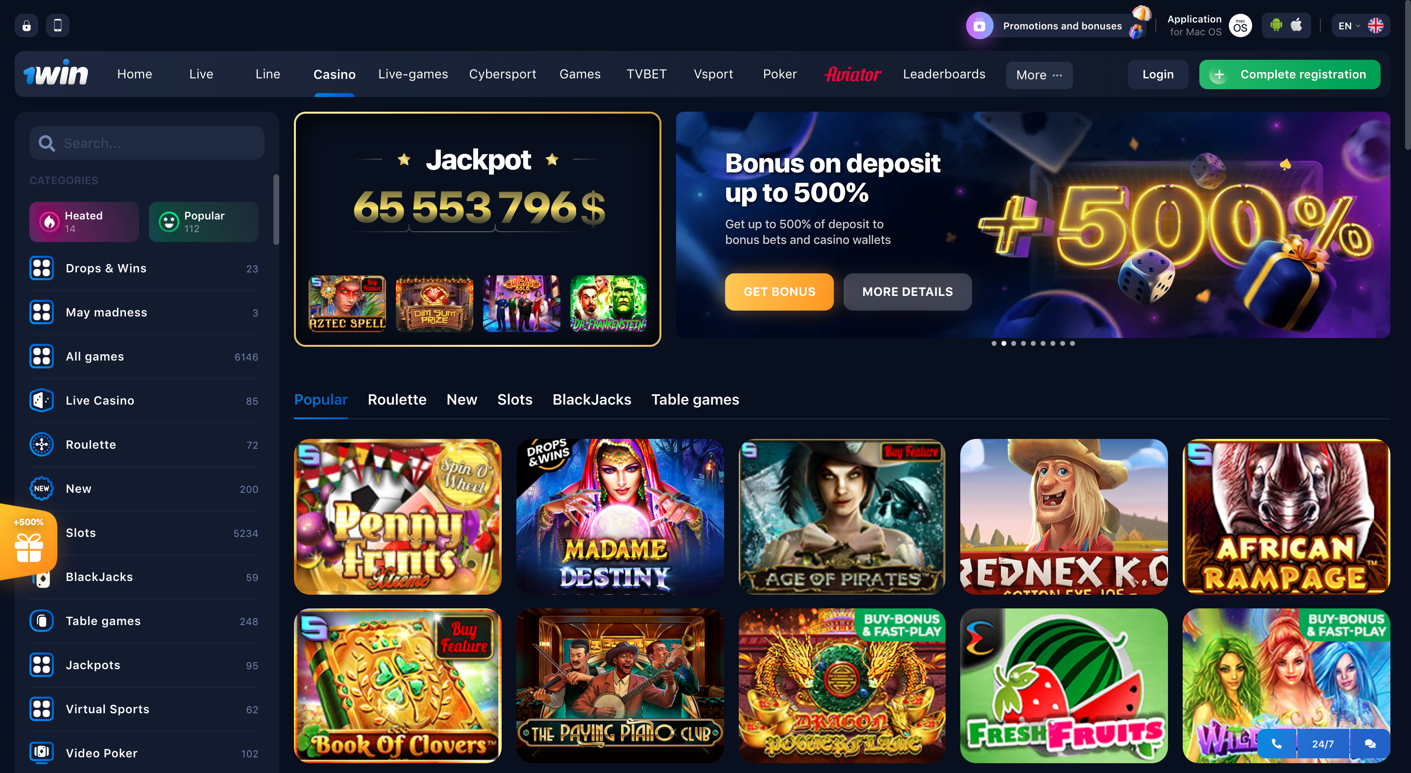 Ao visitar o site do 1Win Casino, você verá uma barra de menus no topo da página com todas as opções mais importantes necessárias - a partir daí, você pode escolher seu tipo de jogo preferido de jogos ao vivo a poker e esportes sempre esportivos apostas. Há também um menu no lado esquerdo da página, onde você pode selecionar facilmente seu tipo de jogo de cassino favorito. No centro da página, você verá todos os jogos mais populares do cassino divididos por categoria.