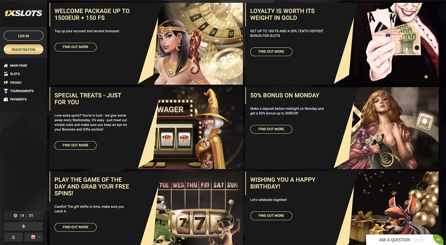 A 1XSLOTS suporta seus jogadores com promoções semanais impressionantes. Jogue regularmente durante os 7 dias anteriores e você será elegível para um bônus toda segunda -feira de até 50% ou até 300 euros e sem depósito Giros grátis sem requisito de apostas toda quarta -feira. o O cassino também lhe dará um doce presente em seu aniversário – 20 Giros grátis em seus slots favoritos.