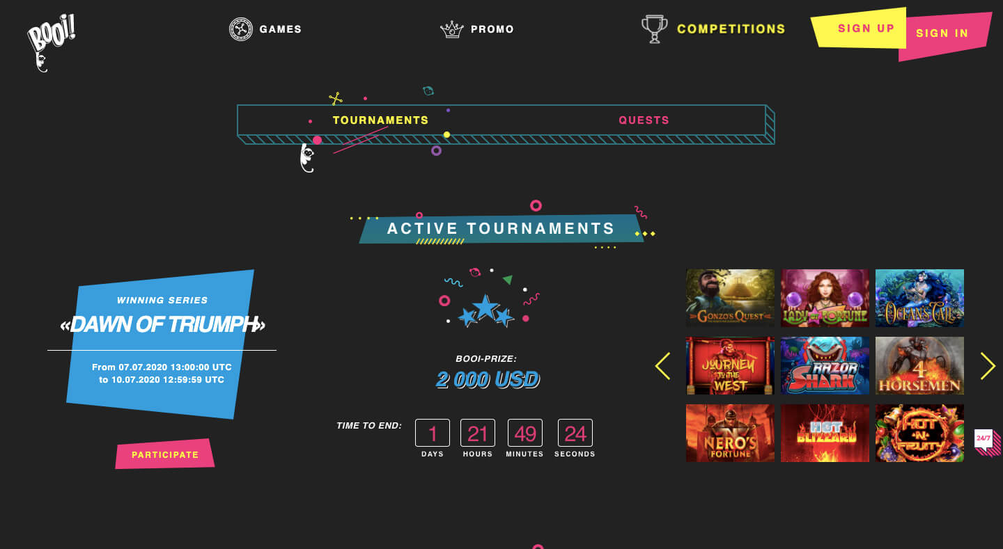 O Booi Online Casino é uma instituição inovadora que inclui o melhor. Existem milhares de jogos, muitas maneiras de depositar e retirar fundos, a ausência de quase todas as restrições e um suporte responsivo em que o cliente pode obter uma resposta rápida e competente a qualquer hora do dia.