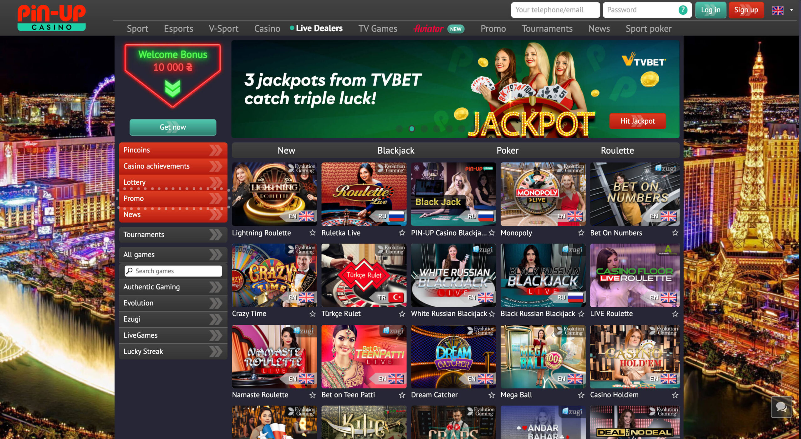 Se você estiver com sorte, experimente alguns dos jogos de concessionárias ao vivo do Pin-Up Casino. O cassino tem uma ótima seleção, incluindo roleta relâmpago, roleta americana, roleta francesa, cassino hold'em, poker do caribenho, sem comissão bacarca e blackjack de apostas gratuitas.